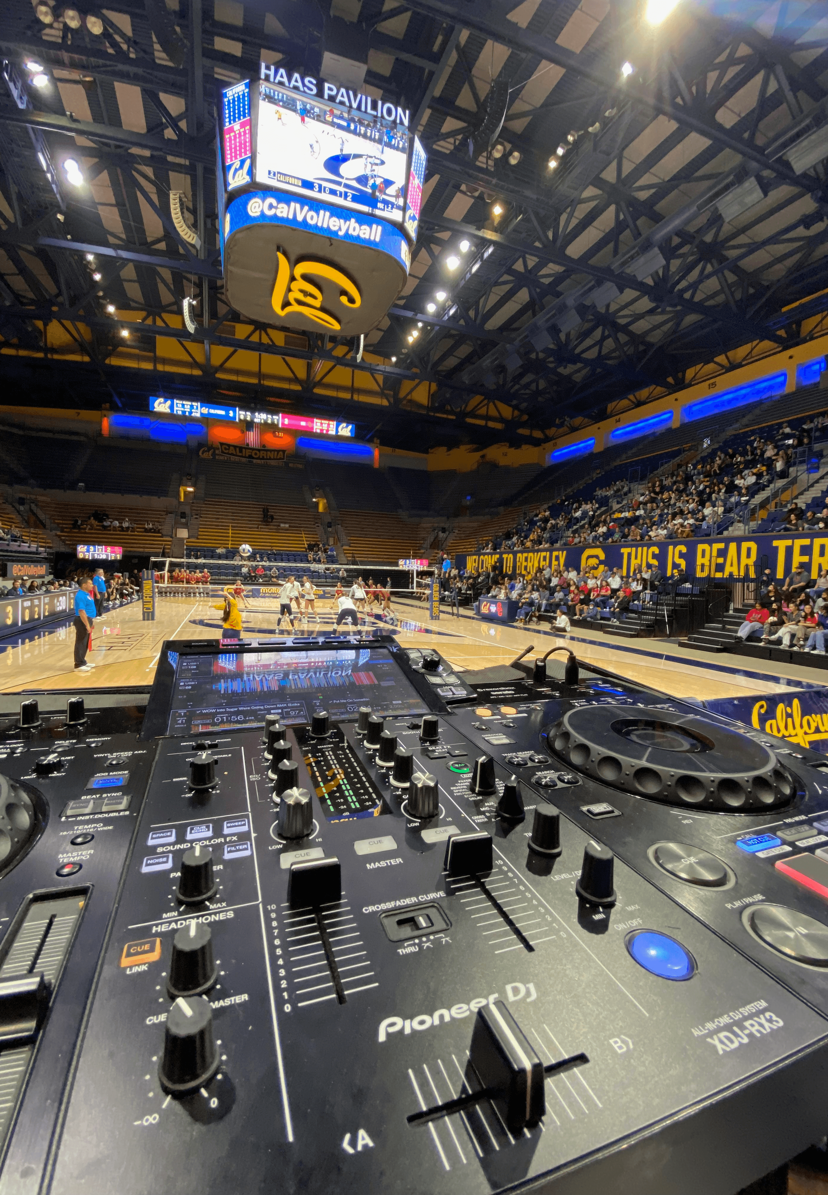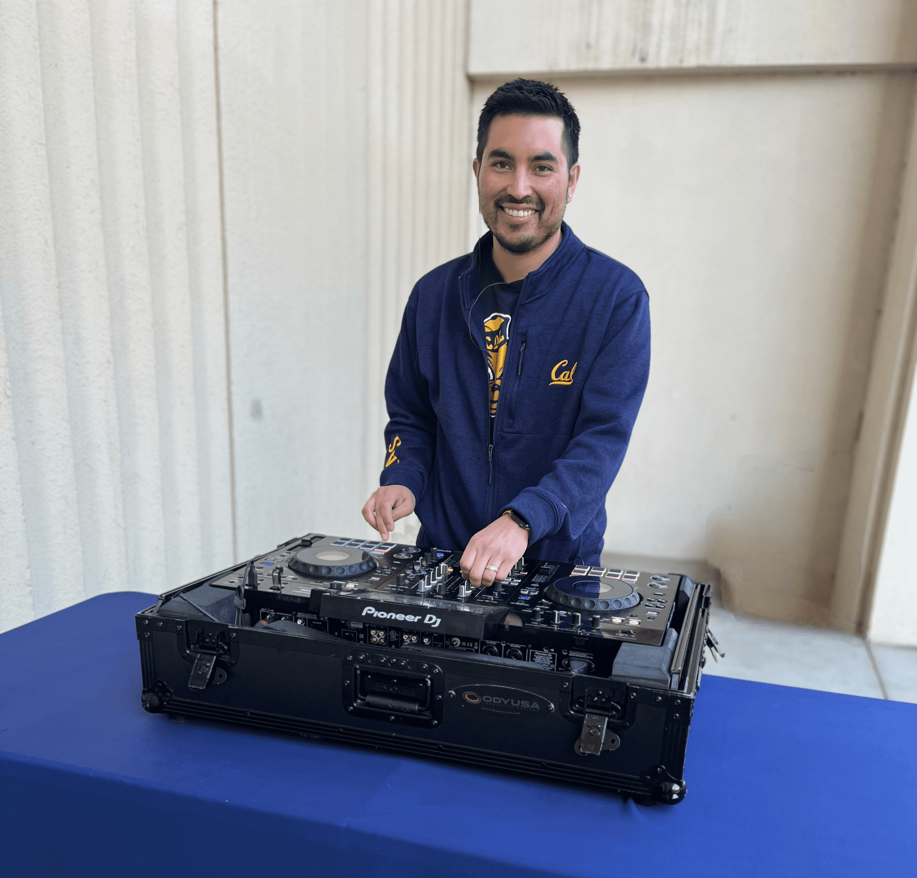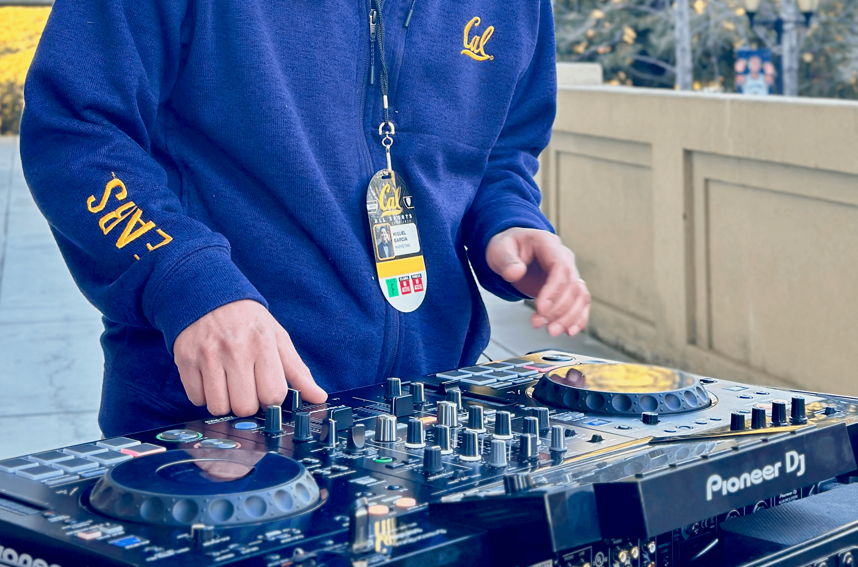 You can catch DJ Miggy dropping beats at Memorial Stadium on Football gamedays or at Haas Pavilion for Basketball, Volleyball, and Gymnastics. He might be outside playing while you wait in line, or he might be inside mixing in-game music.